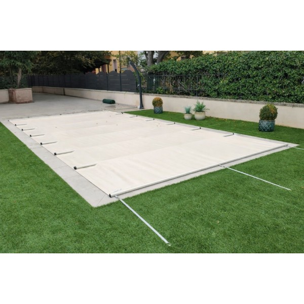 Realizzata con telo in PVC rinforzato ad alta resistenza e barre in alluminio integrate, offre una struttura robusta e stabile che protegge la piscina e riduce la manutenzione, migliorando allo stesso tempo l’efficienza energetica dell’acqua.